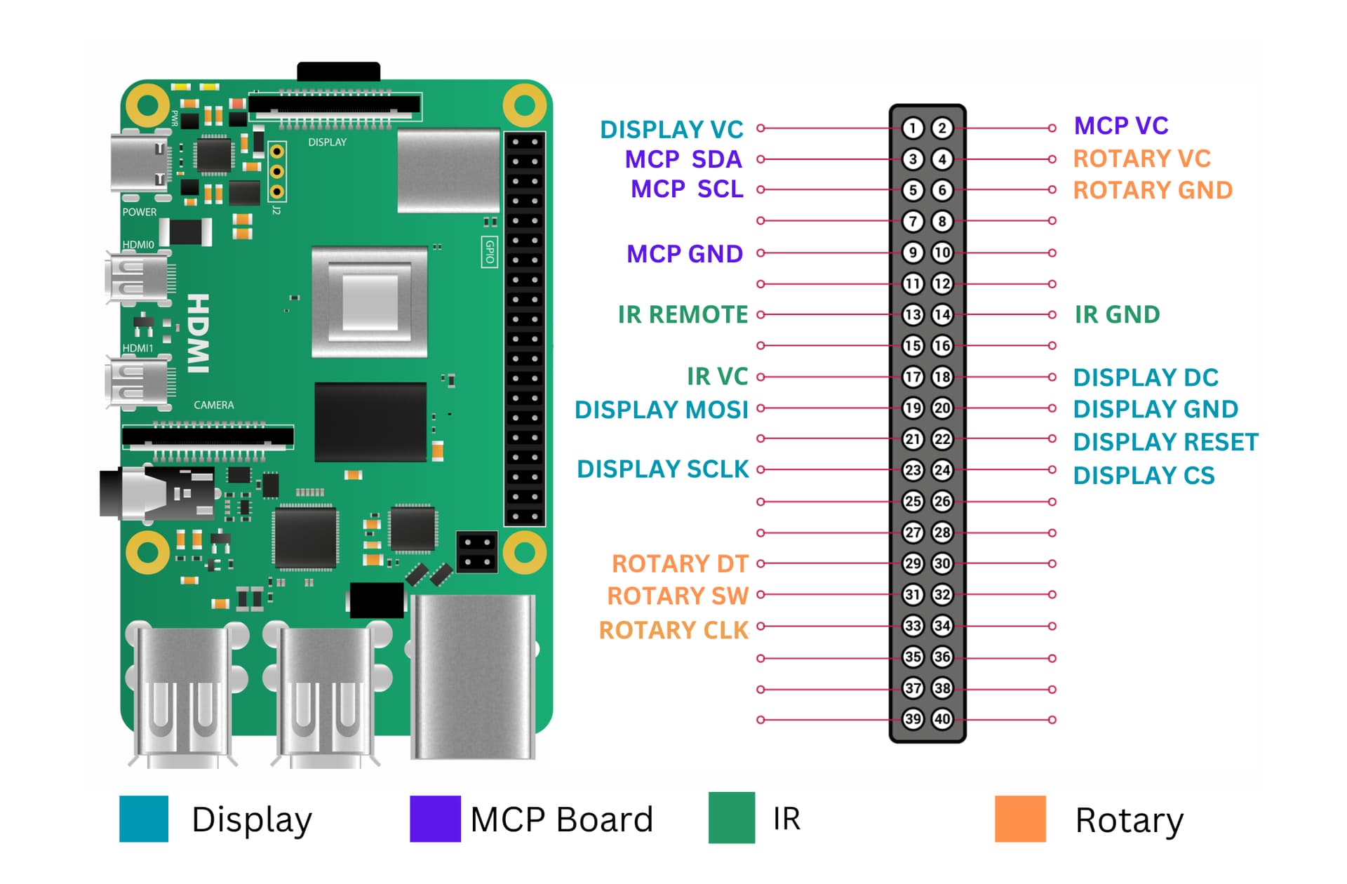 • Switch bounce: handled in software. The rotary encoder and button inputs are debounced in the Python backend, so extra hardware debounce isn’t required unless you prefer it.