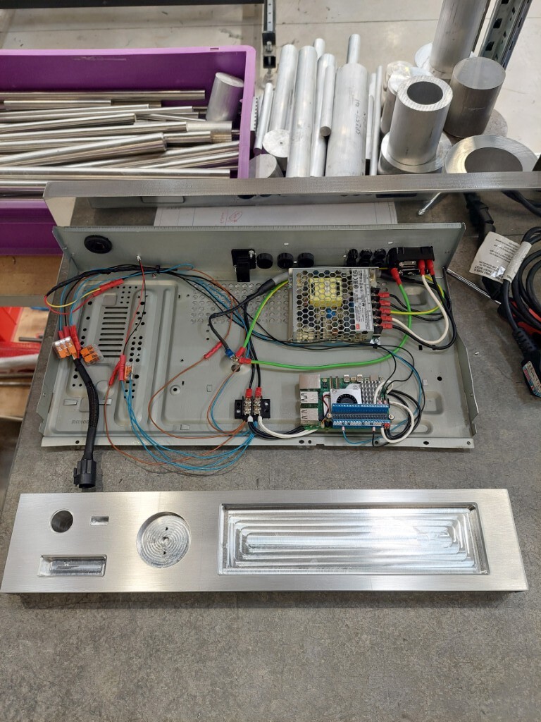 It uses a Rasberry Pi5 4gb, Topping D10, Meanwell transformer, Waveshare 1920*485 DSI screen, a Bournes PEC11R encoder with a custom machined knob, USB & Network ports from Cliff electronics and a RGB LED power switch and my favourite part the custom machined 6082 aluminium faceplate to hold it all together.