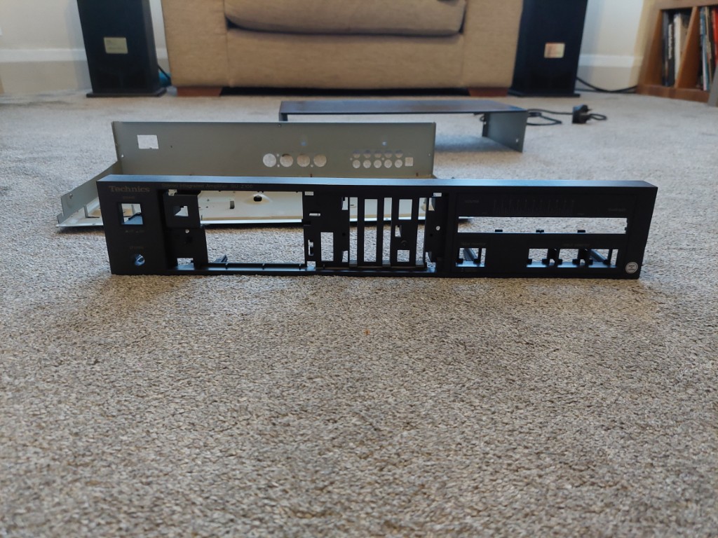 I didn’t want to spend loads of money so when I looked at the price of new enclosures I decided to buy a broken Technics amp for £10 in the hope I could make a replacement front panel, I’m a machinist by trade so have access to CNC machines and plenty of aluminium.