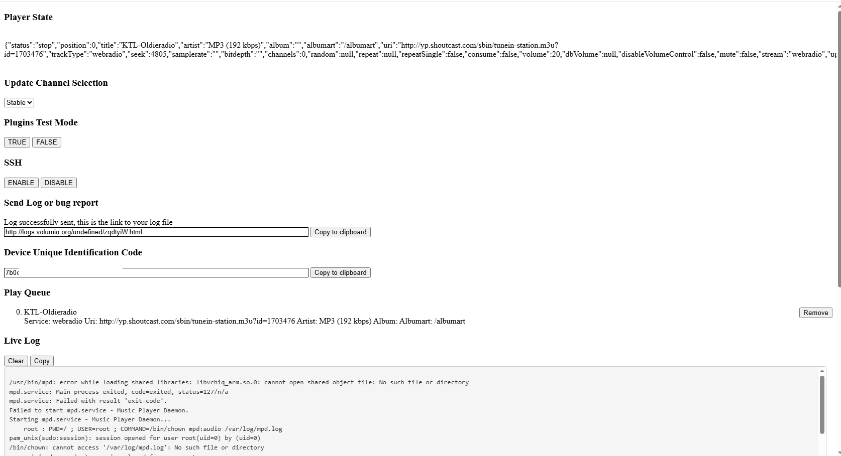 Jul 02 11:32:31 spedycja volumio[965]: info: CoreCommandRouter::executeOnPlugin: my_volumio , getMyVolumioToken