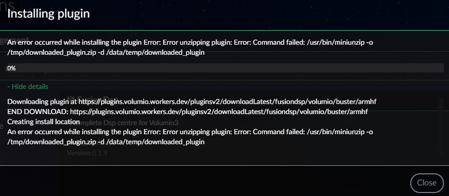 There is something strange going on with the install script. Without reflashing, I removed the FusionDsp plugin and then tried to install 0.1.9 beta. This was the result: