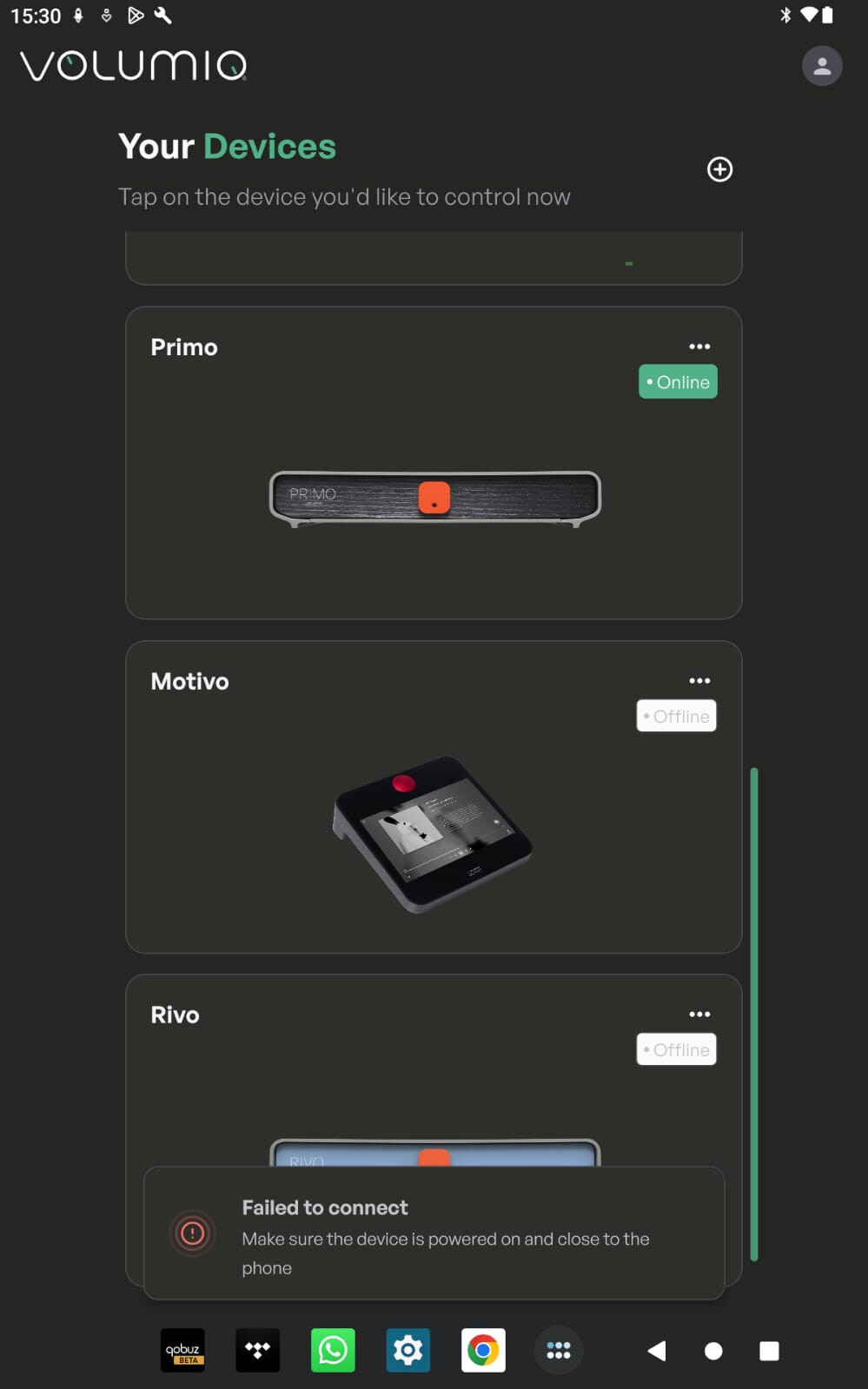 - Removing the device from the app and restarting the app causes Rivo to show as setup, but it still fails to connect.