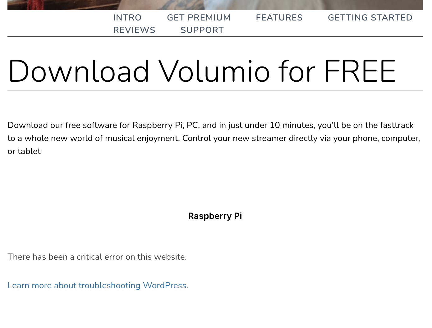 When I go to the download page, it seems to be broken: https://volumio.com/get-started/