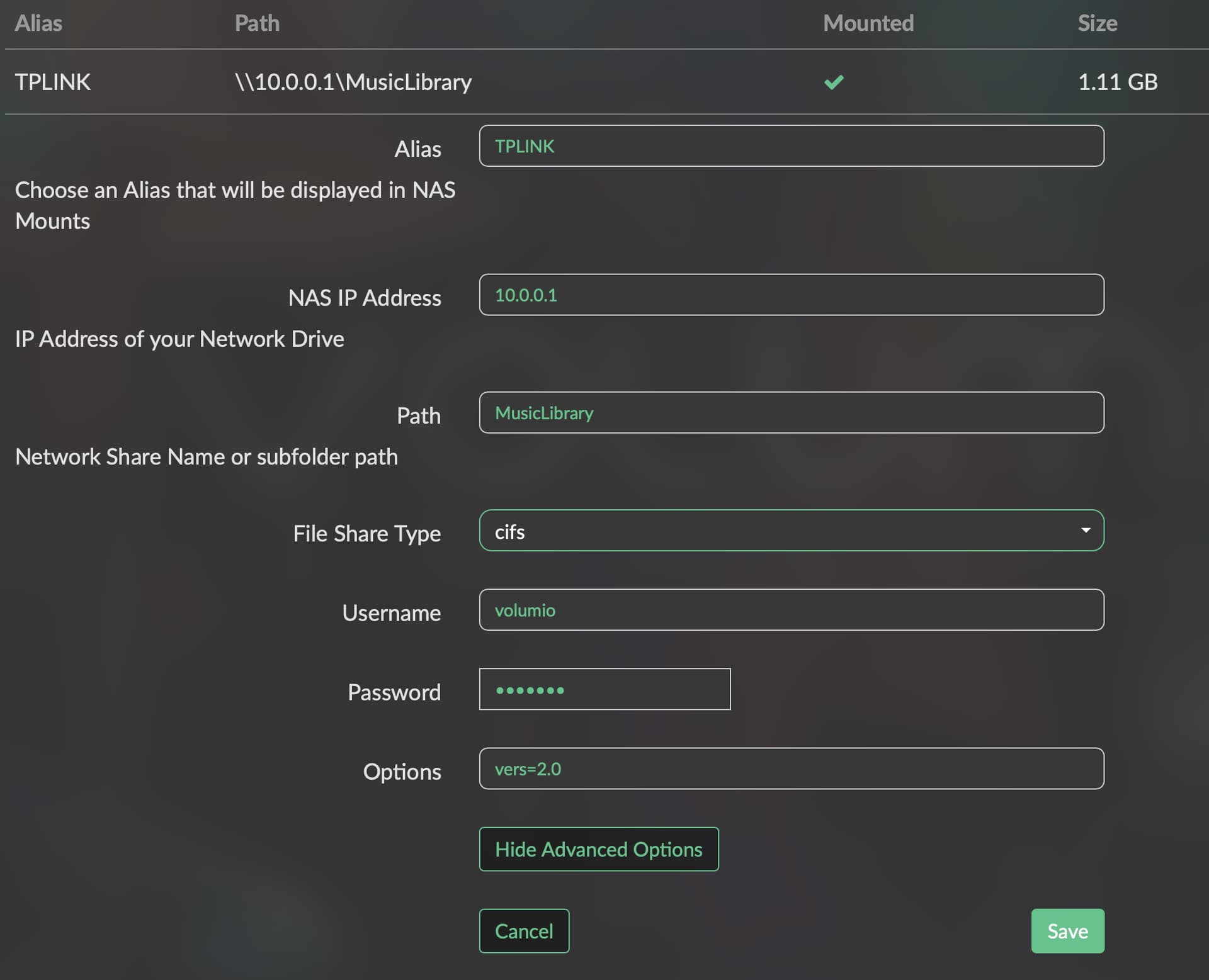 Turns out the path should indeed be just “MusicLibrary”; no drive letters or anything else. Thanks very much. I was ignorantly assuming this was just a name rather than a functional address.