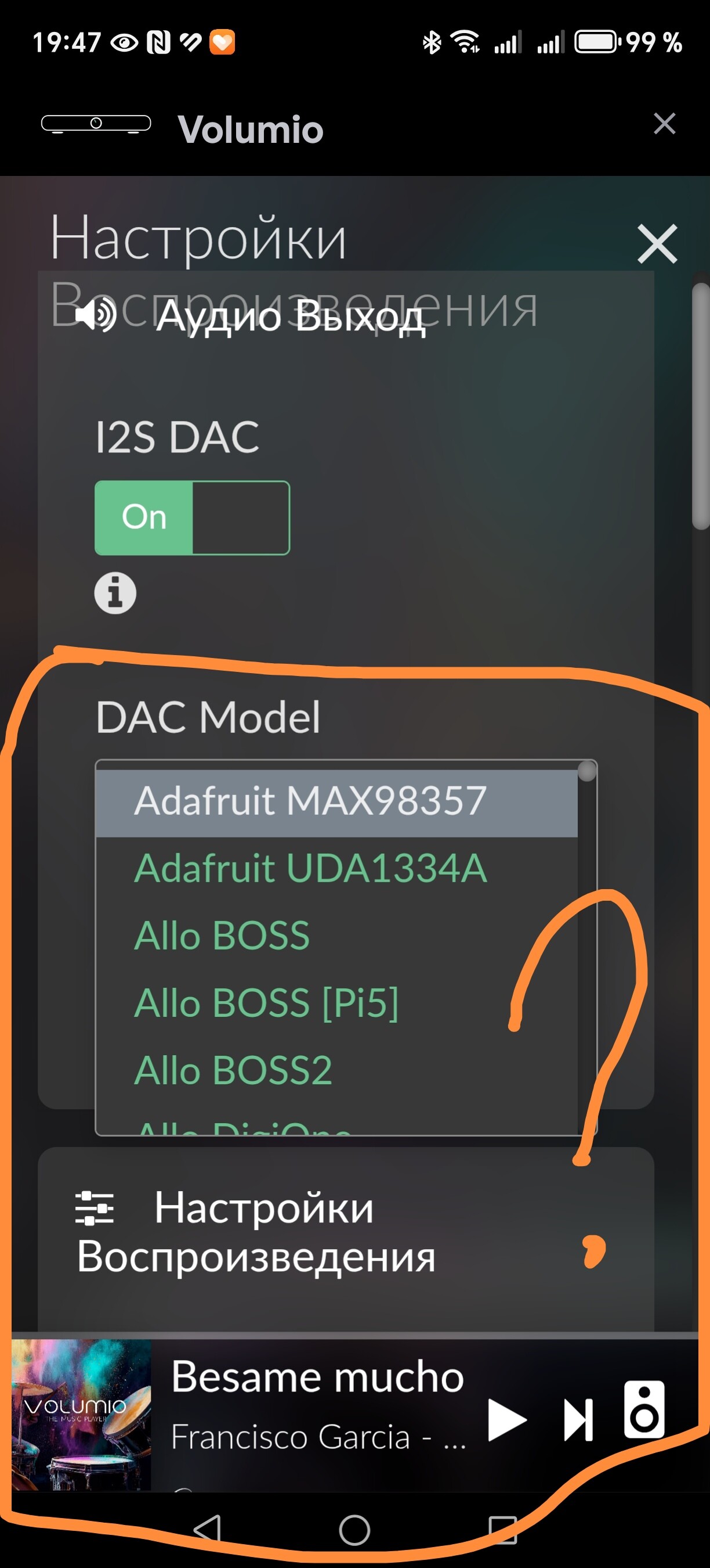 Good afternoon! Dear friends, I have a Raspberry Pi 5 and wanted to install Volumio. For this purpose, I bought a DAC. Upon receiving the DAC, I connected it to the Raspberry Pi 5 and hooked it up to an amplifier, but there was no sound. Although I switched the audio settings in Volumio to the DAC, the list of DAC models there does not include my board. I’ve shown everything in the photo. I kindly ask for your help in getting this DAC to work.