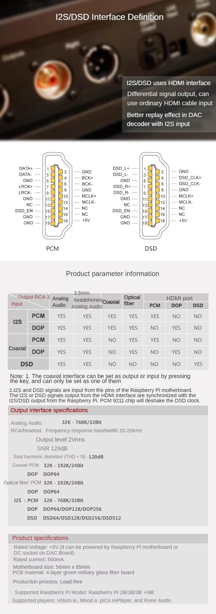 - The DAC supports native DSD over I²S (ES9038Q2M does).