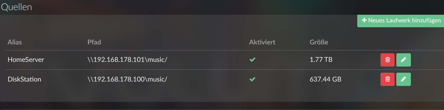 Ich fische mal im Trüben. Das NAS ist richtig eingebunden. Die Musiktitel (ne ganze Menge) sind in Volumio eingelesen. Beim Abspielen erscheint der Hinweis auf ein wav-Format. Handelt es sich bei den abgespielten Dateien um wav-Dateien? Auf welchem Laufwerk liegen die?