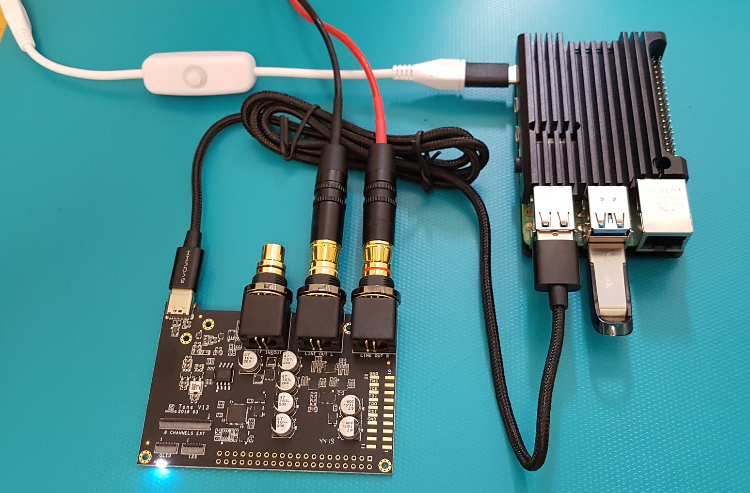 I’ve set up my existing sound hat to use use its own dedicated power supply as recommended for best performance. I get superb audio and perfect operation of the player unit–this is a difficult task because the interface to the player control unit has to instantly* determine which of three distinct encoding methods are used on a given title. Some people with experience with the interface told me i was fighting a loosing battle when expecting it to work with mixed encodings.