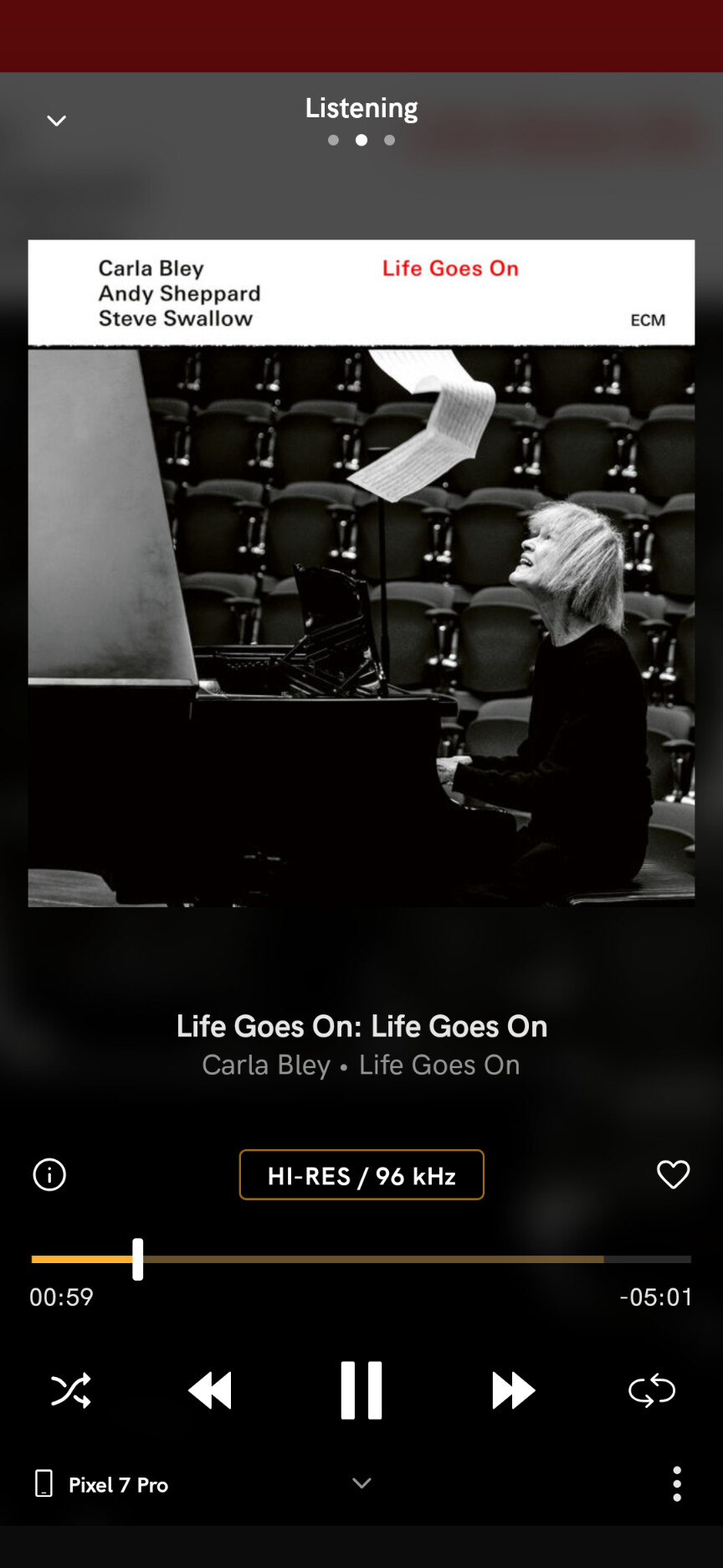 My favourite great sounding recording on ECM and available through Qobuz is ‘Life Goes On’ by Carla Bley.