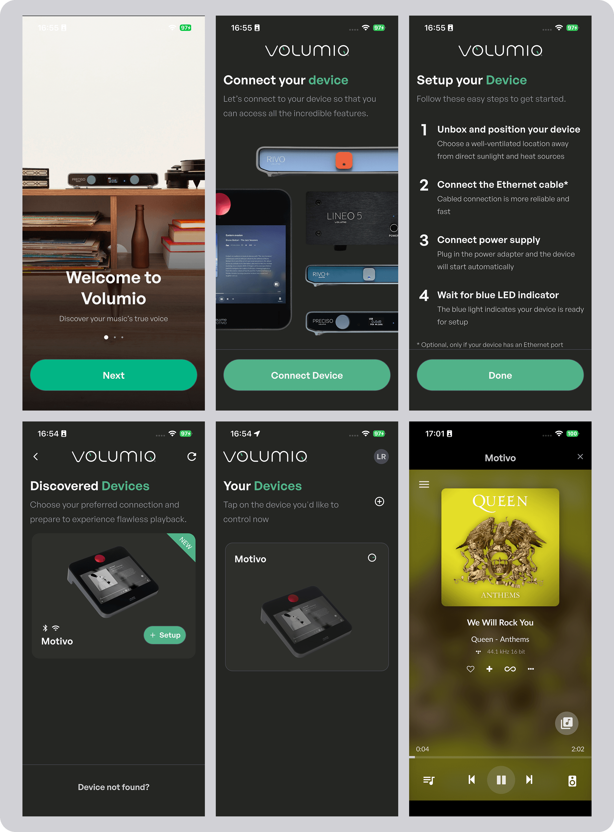 The new Volumio app has been completely rethought to make onboarding as smooth, intuitive, and error-free as possible. And we’re not stopping there: upcoming updates will make the first connection via Bluetooth, making wireless setups easier than ever.
