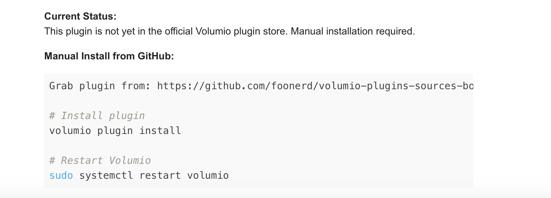 Note: This plugin is in the official Volumio plugin store for V4 users. The manual steps above are for reference only.