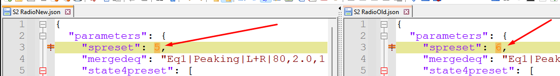 Loaded the filter again, I saw an empty eq6. After removal it seems ok. (For some reason spreset was 6 in the old file.)