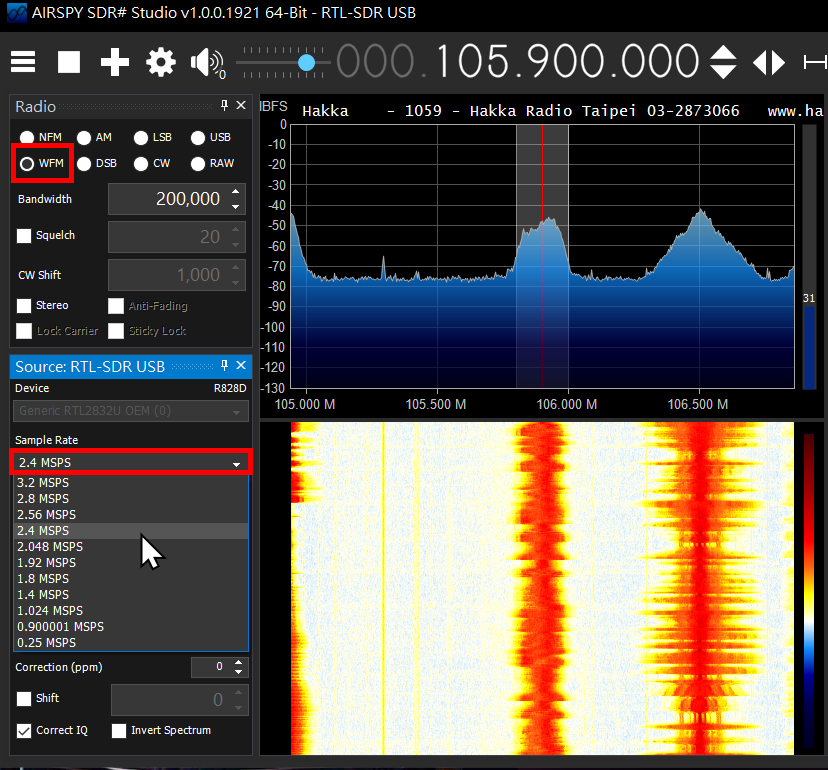 - FM Radio Settings - gain, sample rate, oversampling, scan