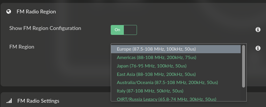 This beta introduces FM regional presets for accurate station detection across different broadcast standards.