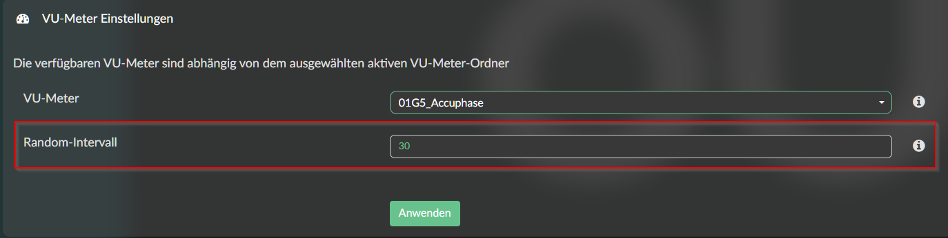 Thank you for the hints here. Installation of 3.0.5 was successful and i used the template folder 1024x600_custom_1 but why the random-intervall option is shown? I do not want to change the VU-Meter type in a random intervall. Can anyone help?