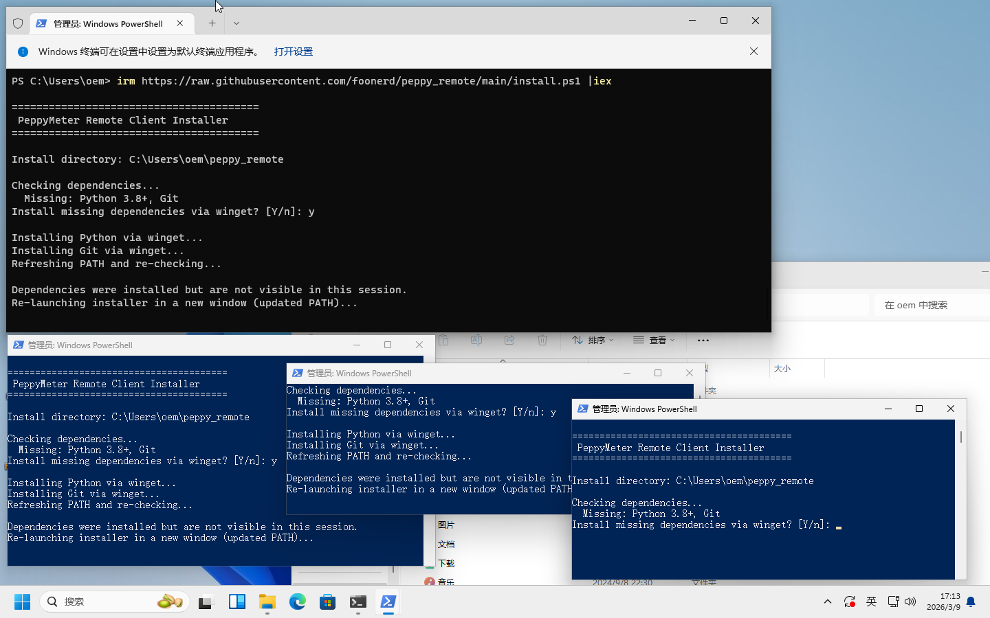 I still haven’t been able to successfully install the Windows Remote client. The install.ps1 file keeps opening new windows to install the same component.