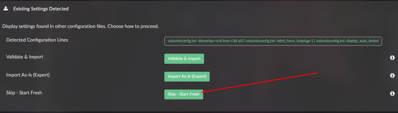 A guided wizard plugin for configuring displays on Raspberry Pi running Volumio 4. Instead of manually editing config.txt, cmdline.txt, and hunting down the correct dtoverlay parameters, this plugin walks you through the process step by step.