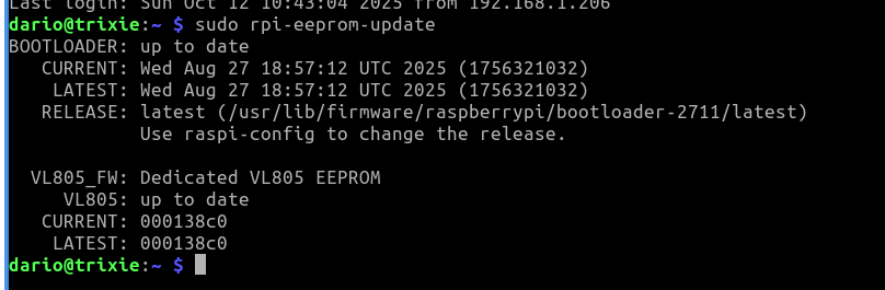 To my surprise, the “currently installed version” was reported as up-to-date, but this is not possible since this RPi4 was not used since very long time, and the latest update is from 27th August 2025