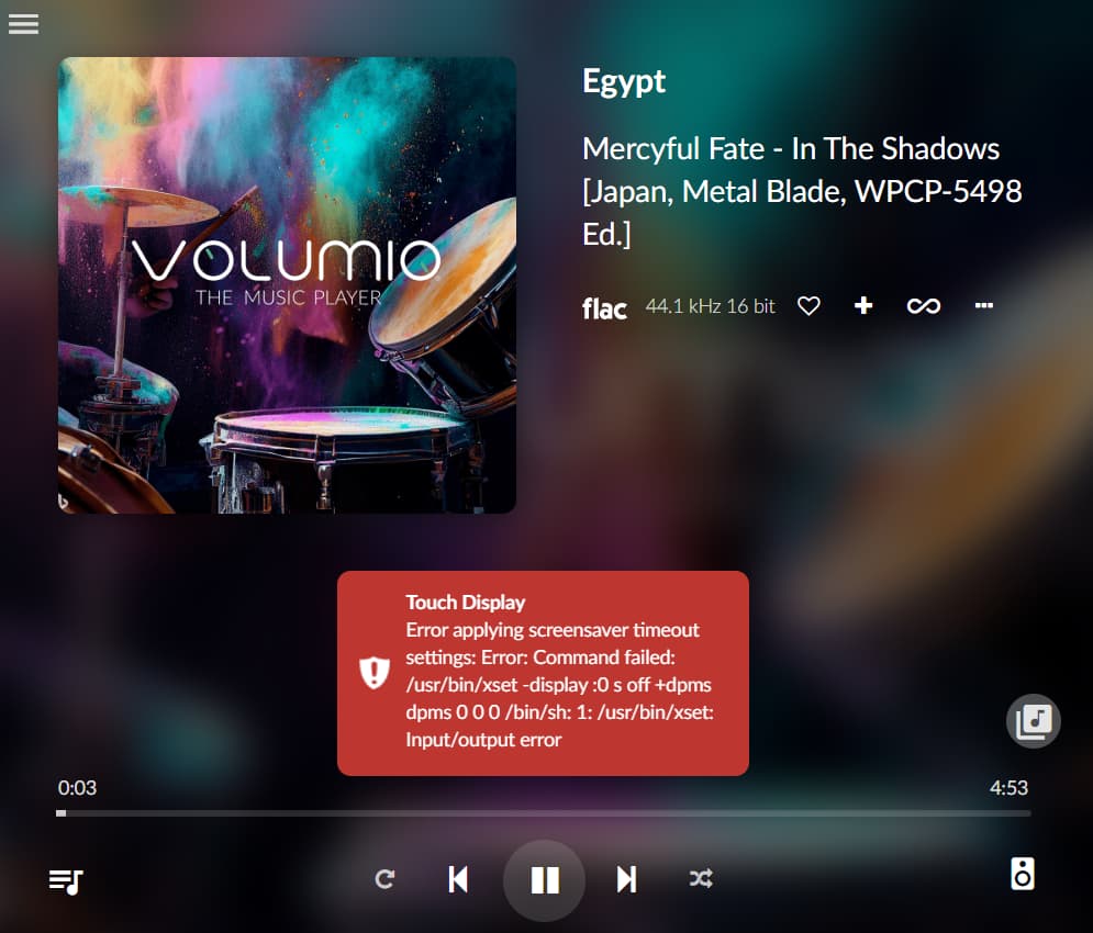 Pi4b, external DAC, 7’’ original touch display, Volumio 3.832.