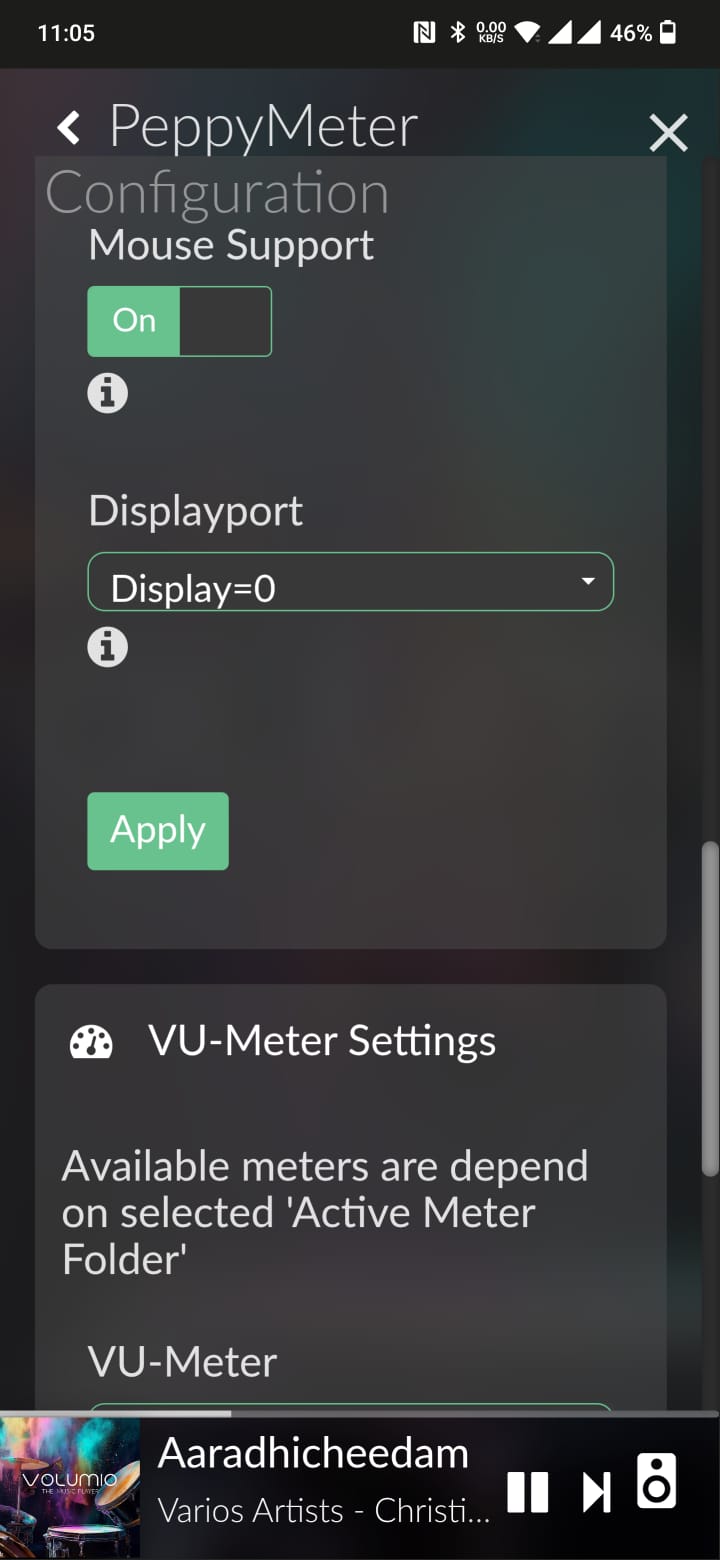 In the Peppymeter configuration/vu meter settings section: