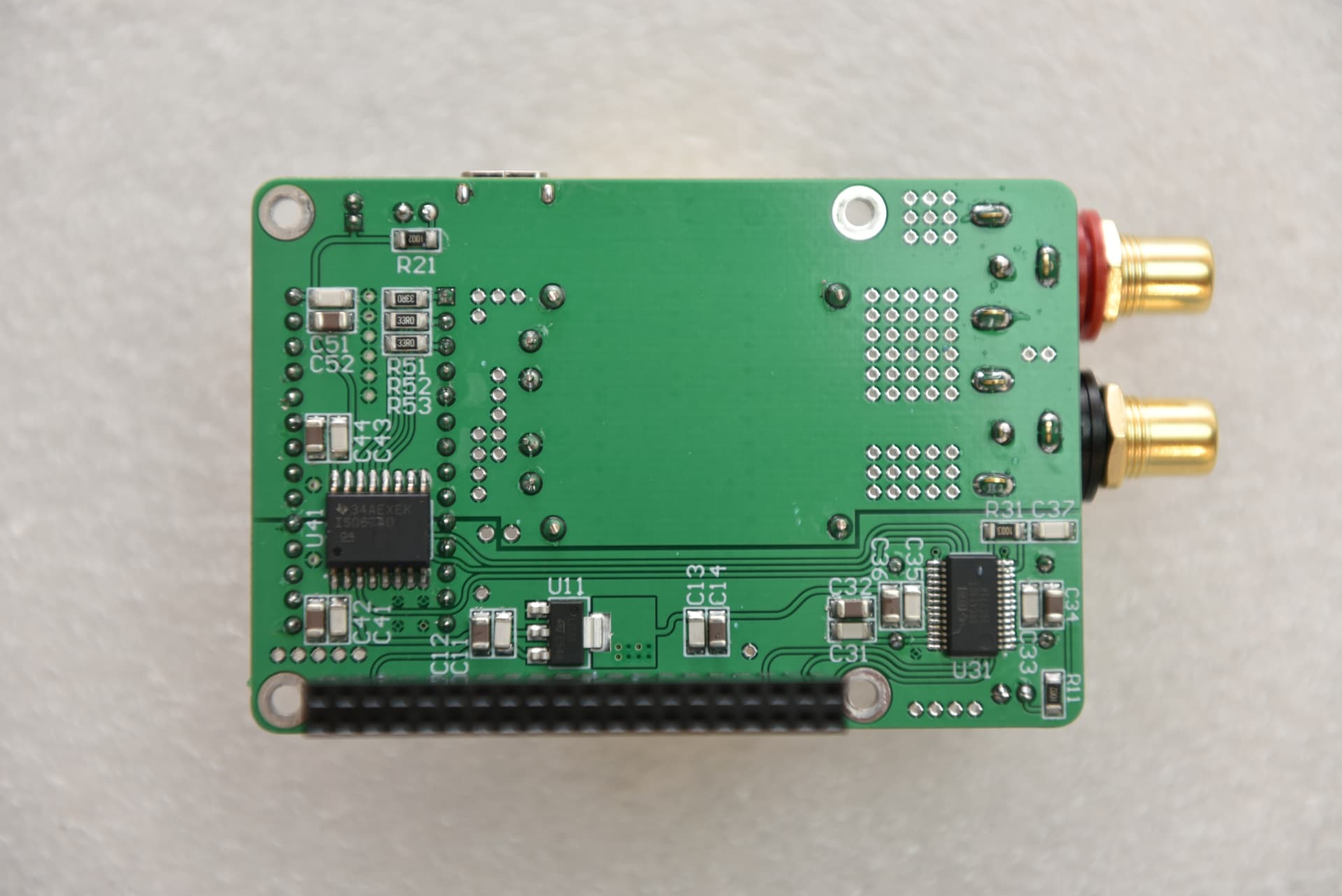 - Galvanically isolated from Raspberry Pi using NVE IL715E or TI ISO6740 to prevent noises from entering into the analogue path
