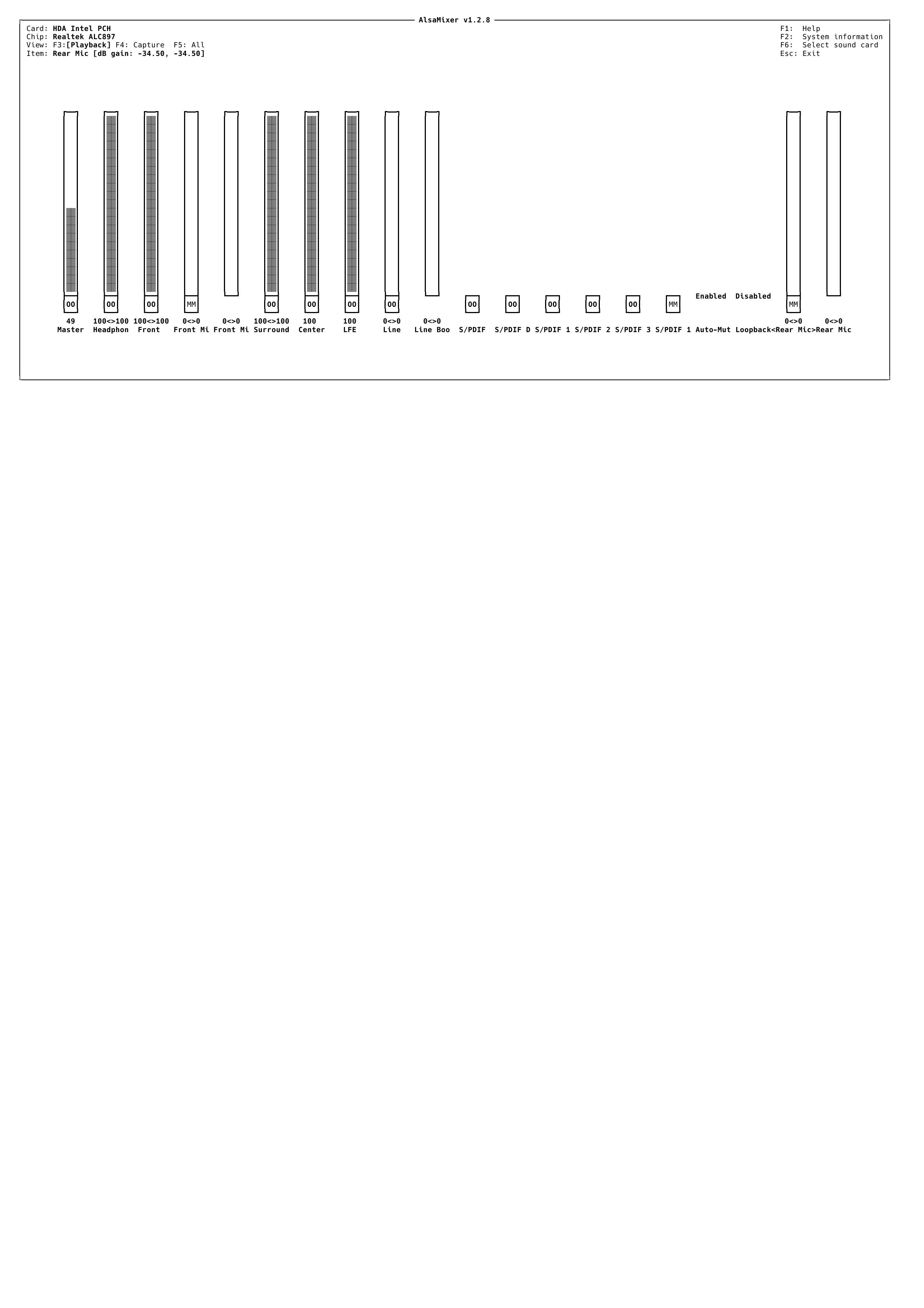 Front Left: Playback 0 [0%] [-34.50dB] [off]