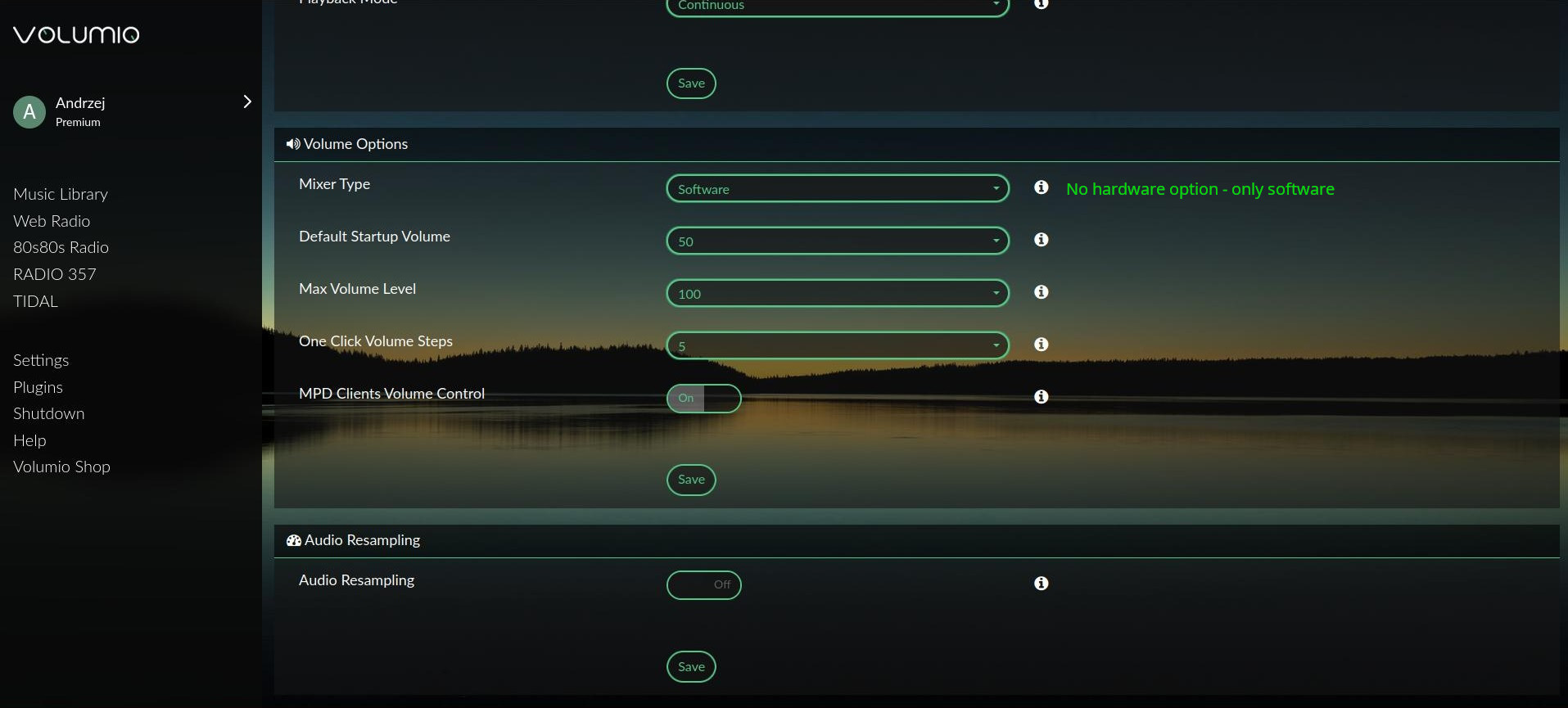 If the XMOS UX316 + ES9039Q2M there’s nothing you can do to control the hardware in Volumio.