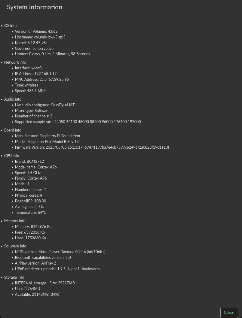 I updated Systeminfo v3.0.14 for Volumio4 based on Bookworm.