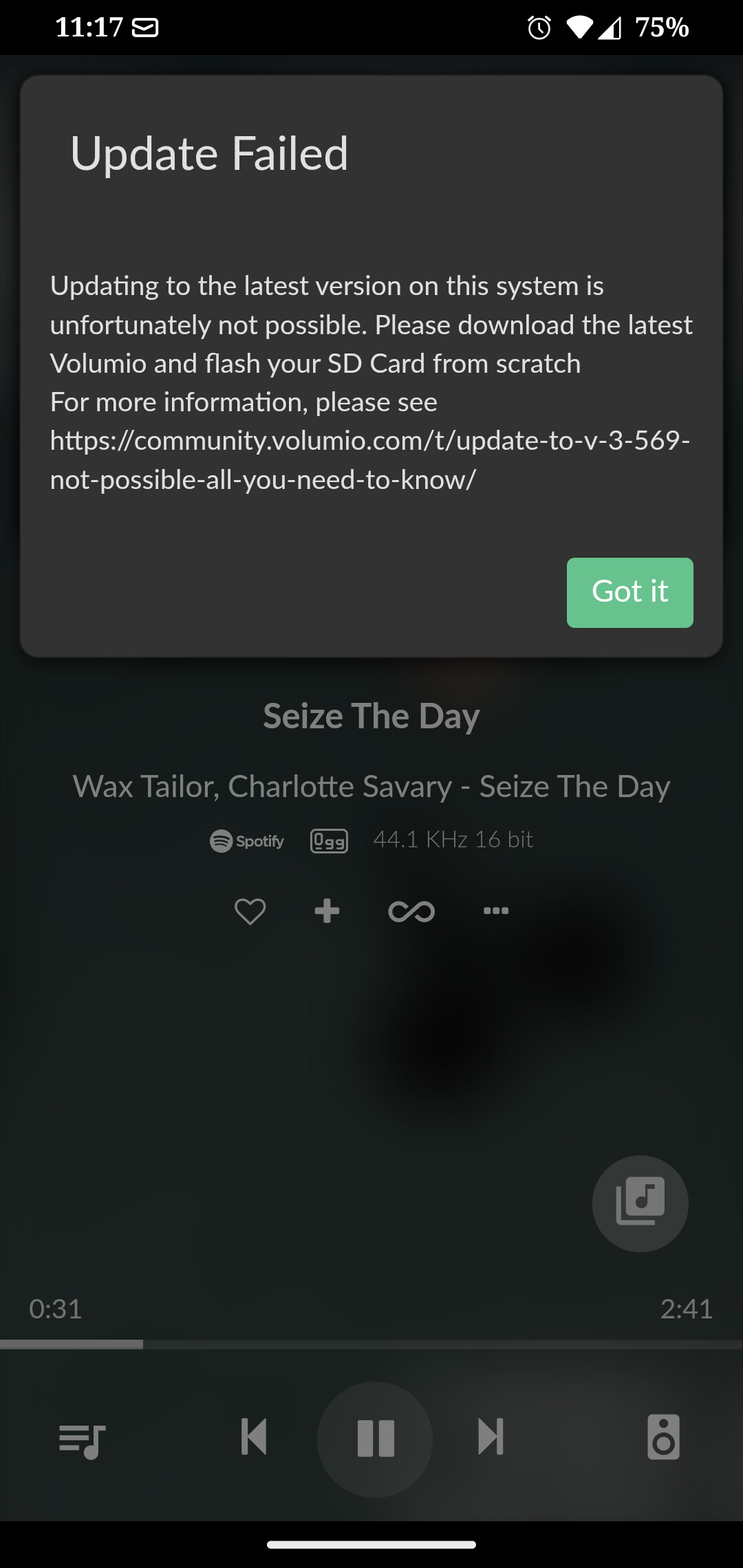 ps, when I use the same SD card with the regular volumio, no problem with updating.