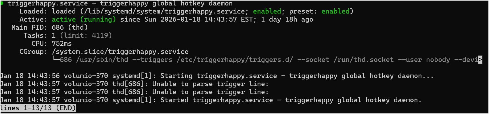 systemctl status triggerhappy.service