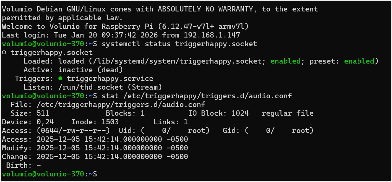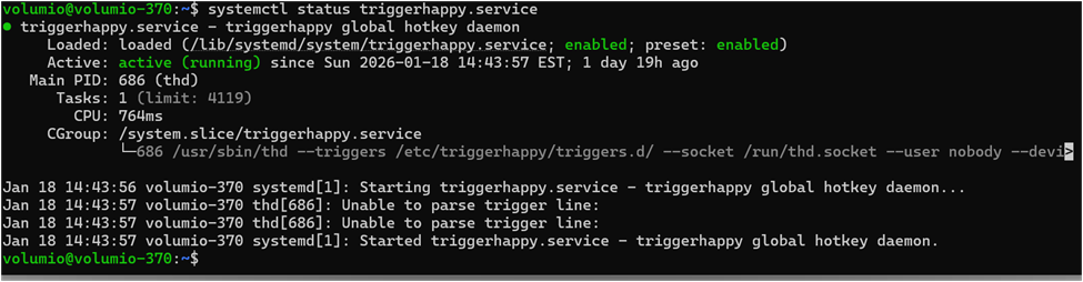 PR submitted: fix: add nobody user to input group for triggerhappy by foonerd · Pull Request #344 · volumio/volumio-os · GitHub