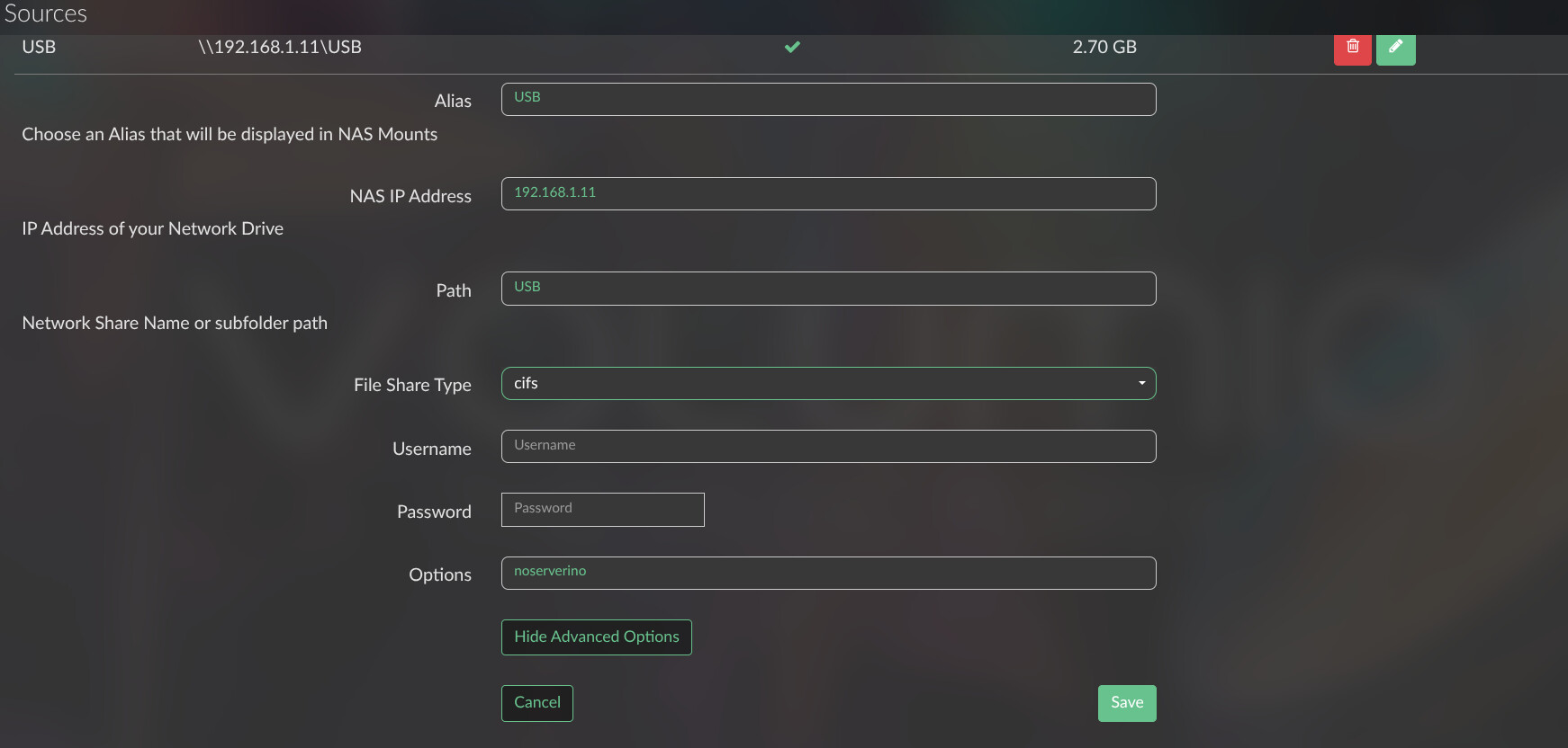 The good news: the share itself mounted fine. networkfs negotiated it, forced SMB vers=2.1 for the guest mount (you did not need to add that manually, the plugin does it for you on guest shares in 4.x), and df confirms it sees 27 GB total with 2.8 GB used. From the kernel’s point of view the mount is healthy.